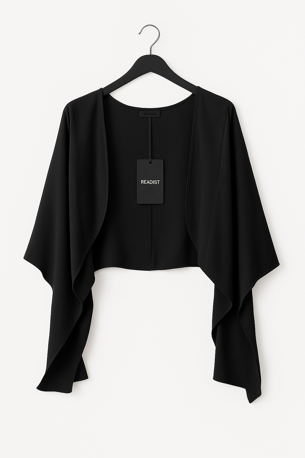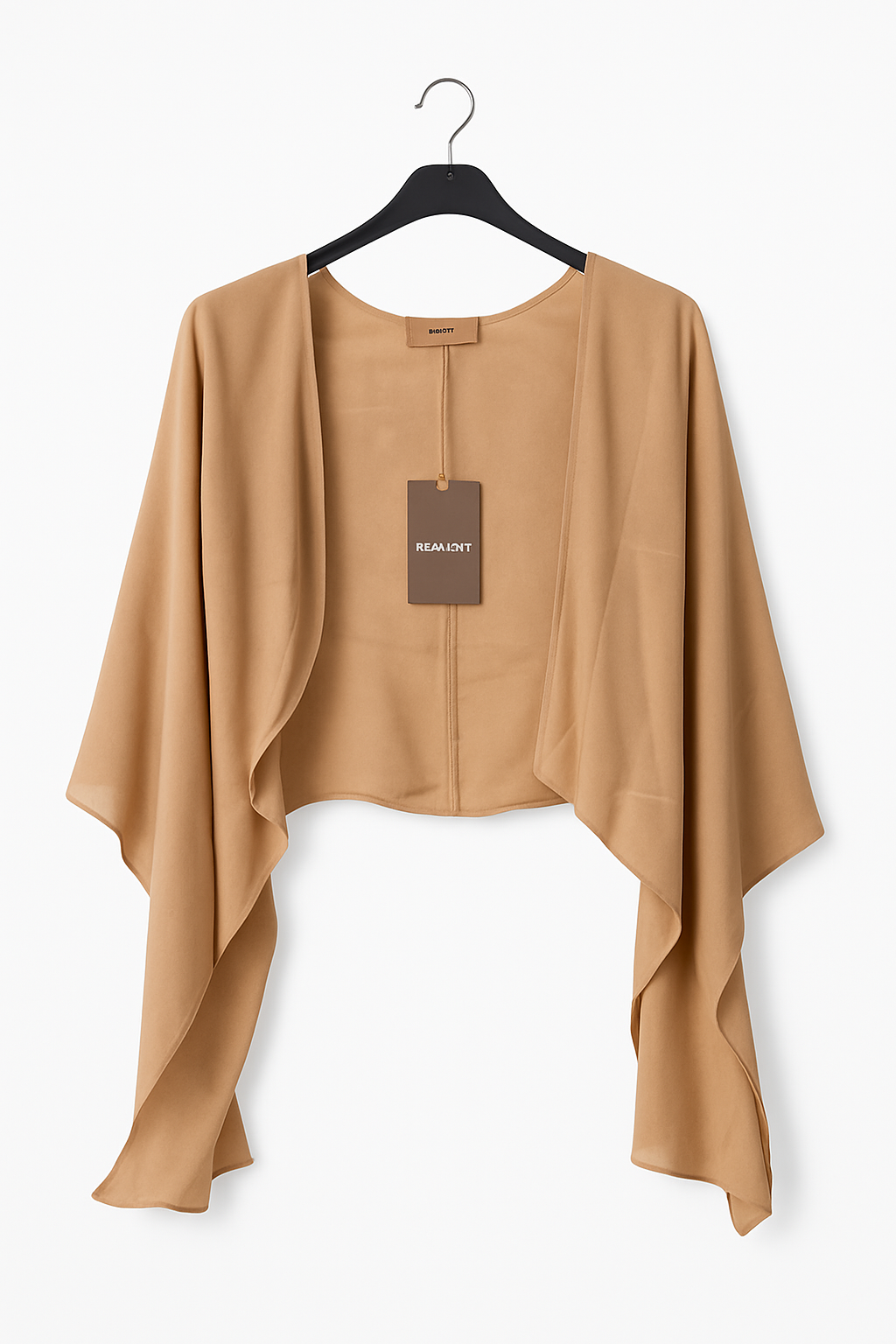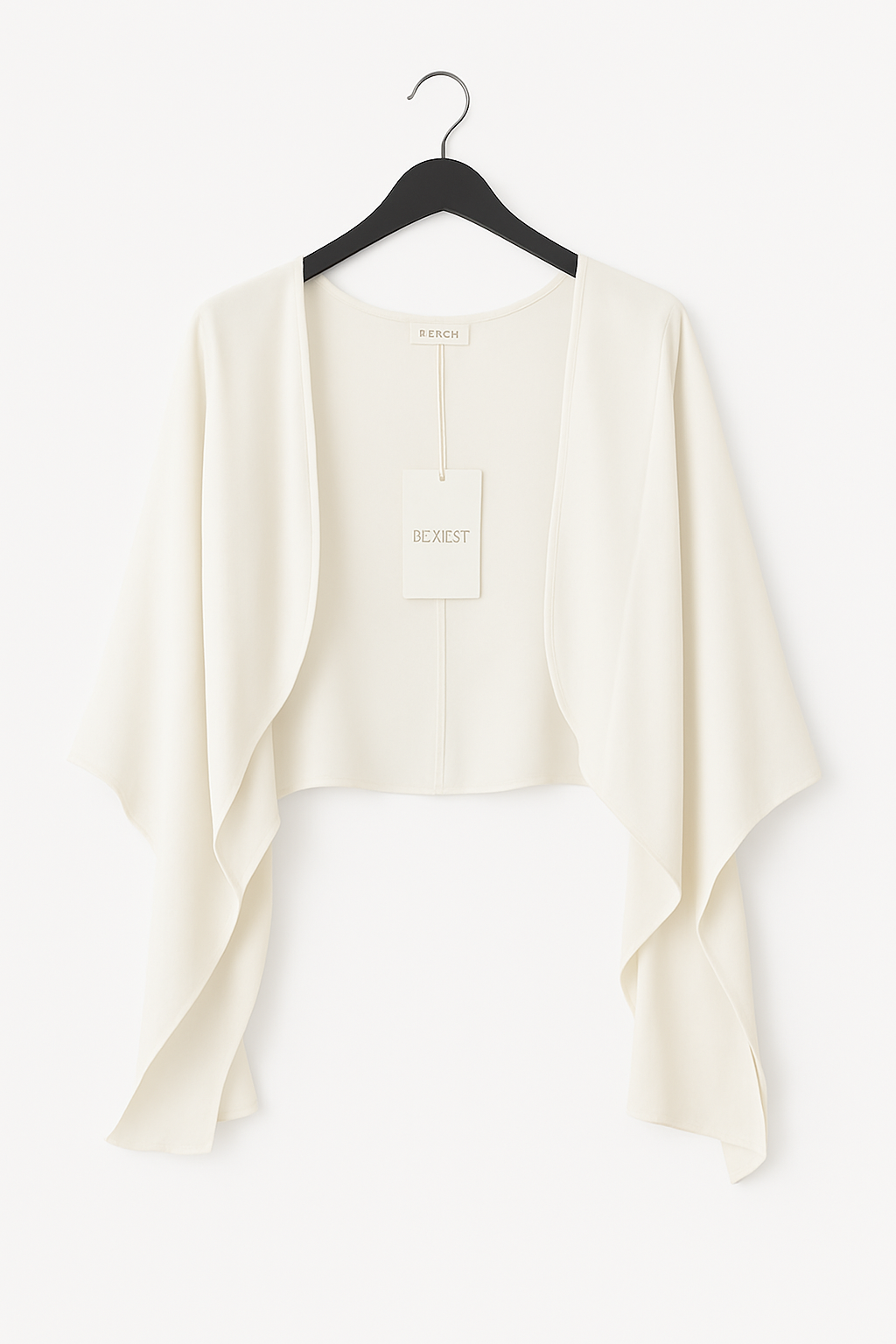 Este bolero viene en tres tonos beige, blanco y negro, es el complemento ideal para cualquier outfit. Su diseño abierto y mangas amplias lo hacen cómodo y favorecedor. Perfecto para superponer sobre un vestido o llevar con jeans y top. Su tela ligera lo convierte en una prenda infaltable para la primavera/verano.