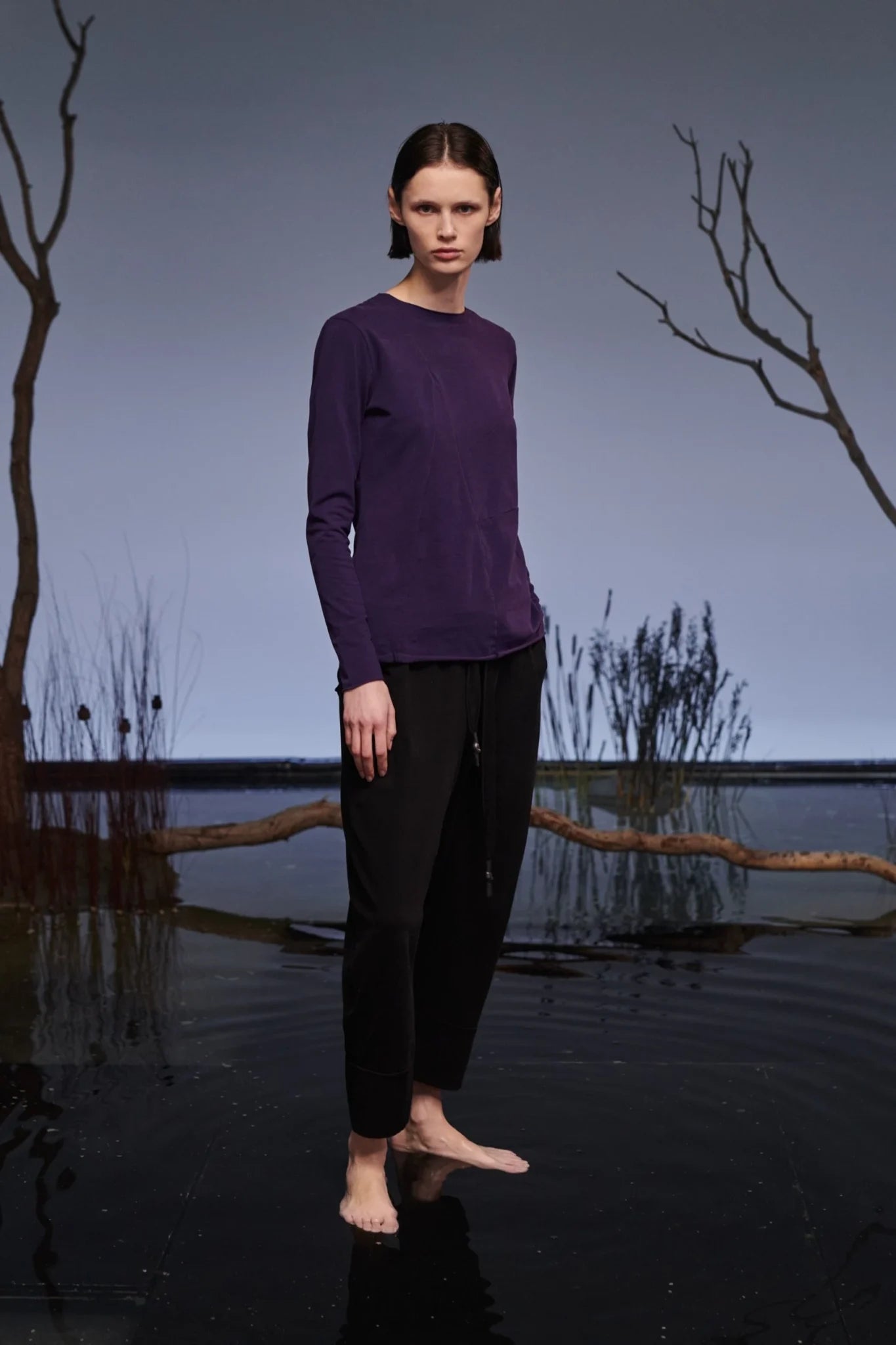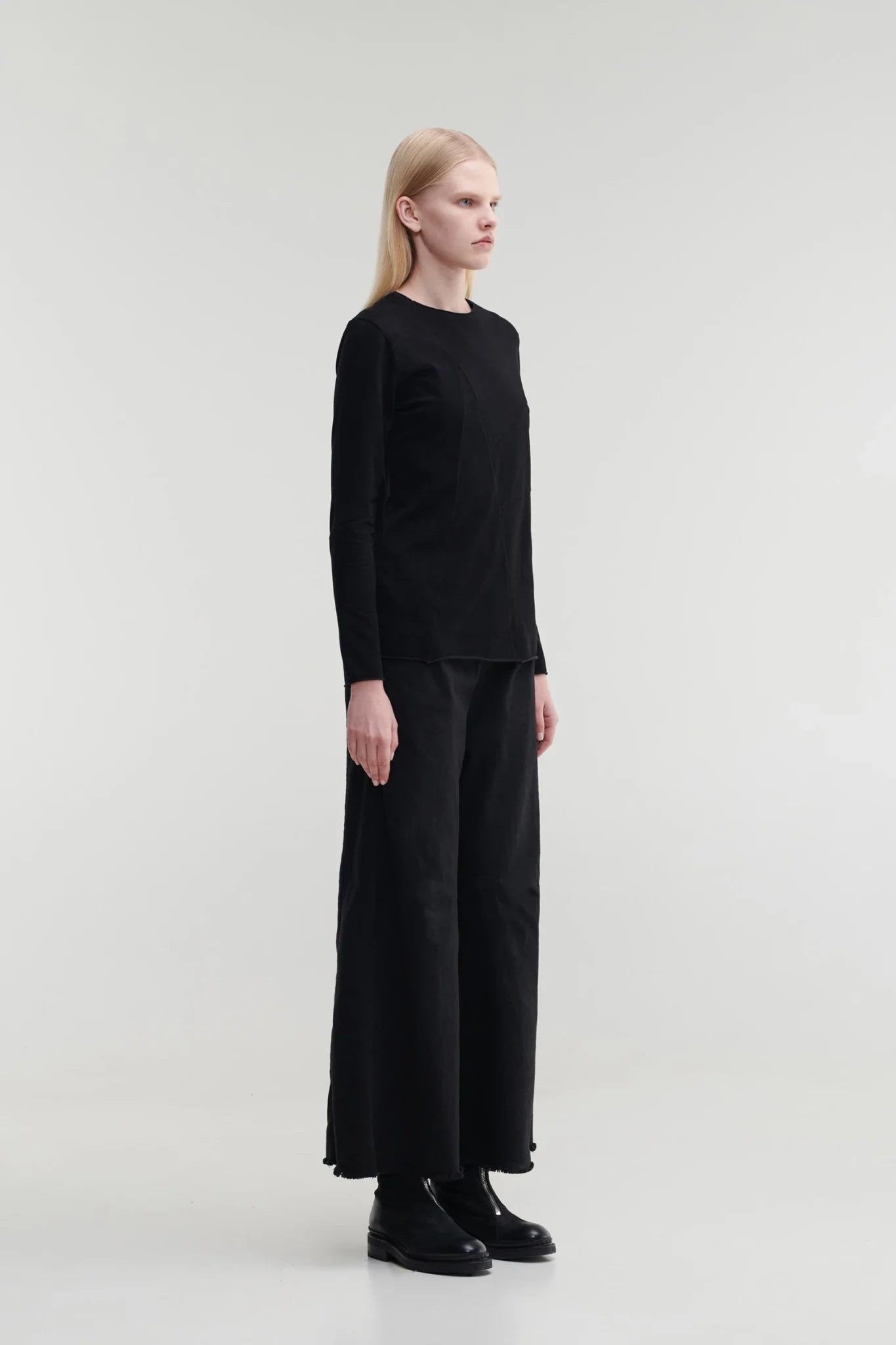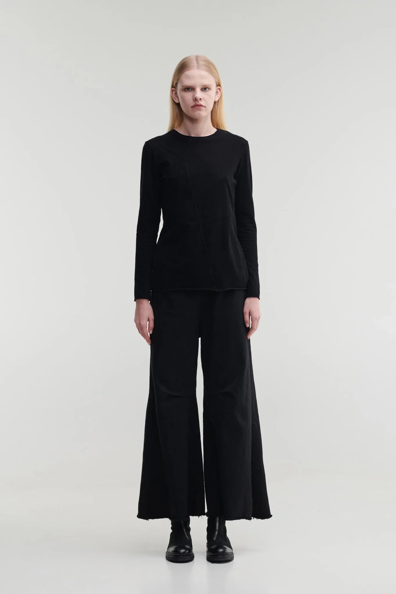 Camiseta de manga larga con cuello redondo y corte entallado confeccionada en tejido de punto de algodón. FRÍO presenta costuras decorativas diagonales en la parte delantera. Prenda teñida: el color, la talla o la forma pueden variar ligeramente.