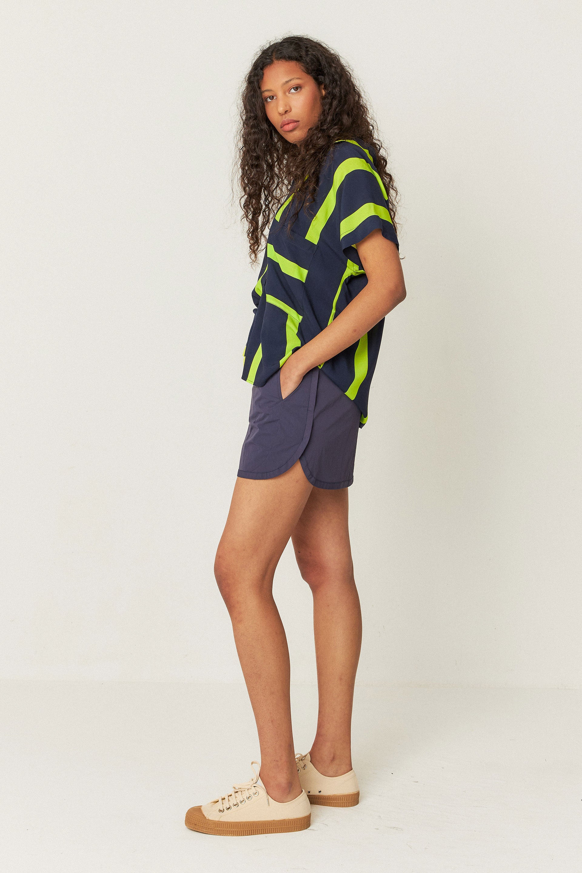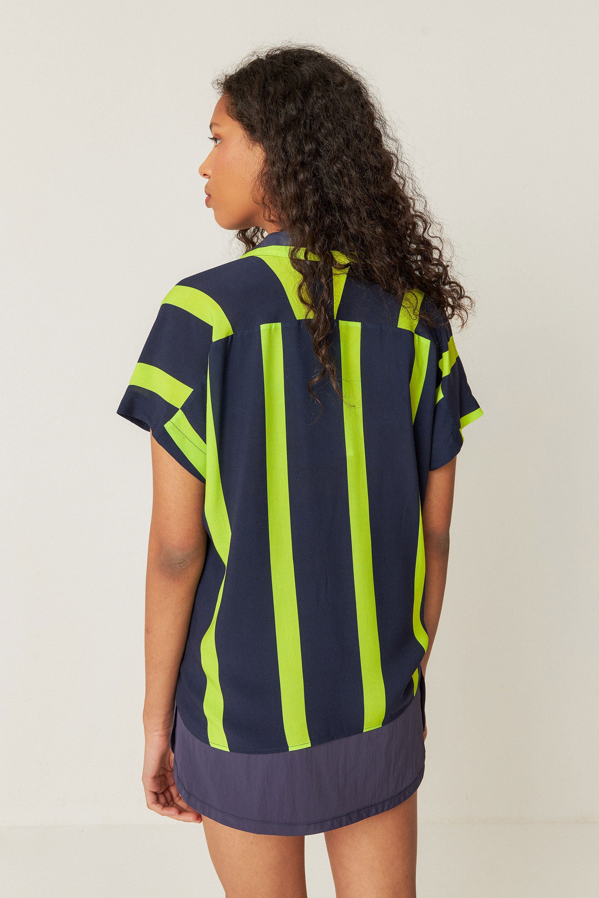 Camisa sin mangas de corte amplio. Cuello clásico y cierre delantero abotonado.