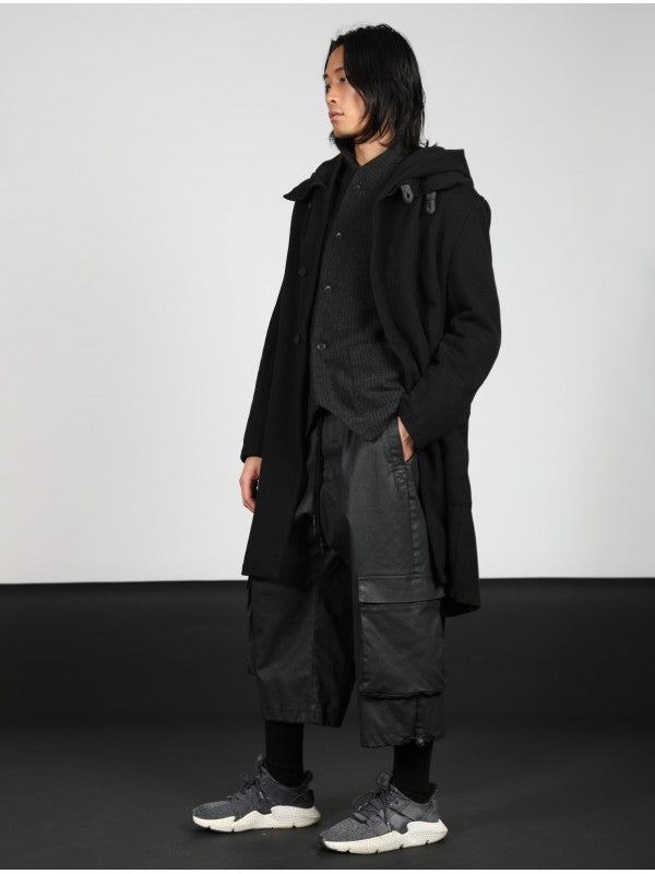 PANTALÓN CROPPED CON GOMA ELÁSTICA EN LA CINTURA Y PUÑOS AJUSTABLES, TEJIDO GRUESO Y RECIO EN ALGODÓN-LYCRA CON ACABADO RESINADO MATE