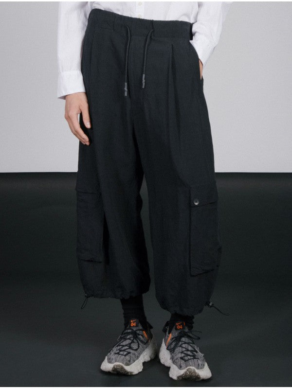 PANTALÓN CROPPED CON GOMA ELÁSTICA EN LA CINTURA Y PUÑOS AJUSTABLES, DE LINO-VISCOSA, TEJIDO LIGERO, SECO Y CON MUCHA CAÍDA