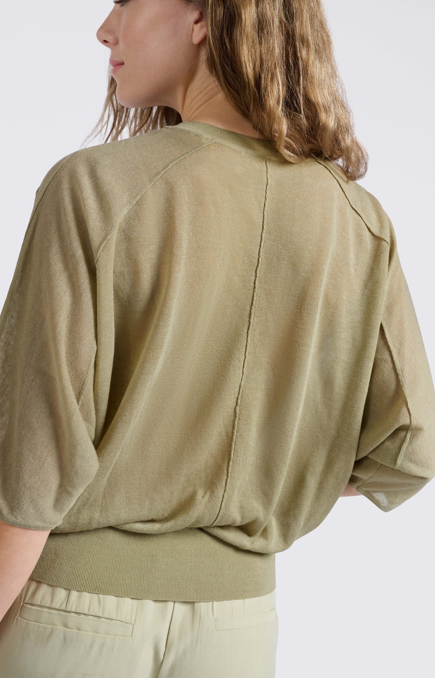 Este suéter ligero y vaporoso está confeccionado en un tejido de punto fino y transparente con un corte oversize. Las mangas murciélago y el cuello redondo crean un look informal a la vez que moderno. Un bajo elástico le da un sutil efecto abullonado. Perfecto para llevar sobre una blusa y lograr un estilo desenfadado y divertido. La modelo mide 178 cm y usa la talla 2.